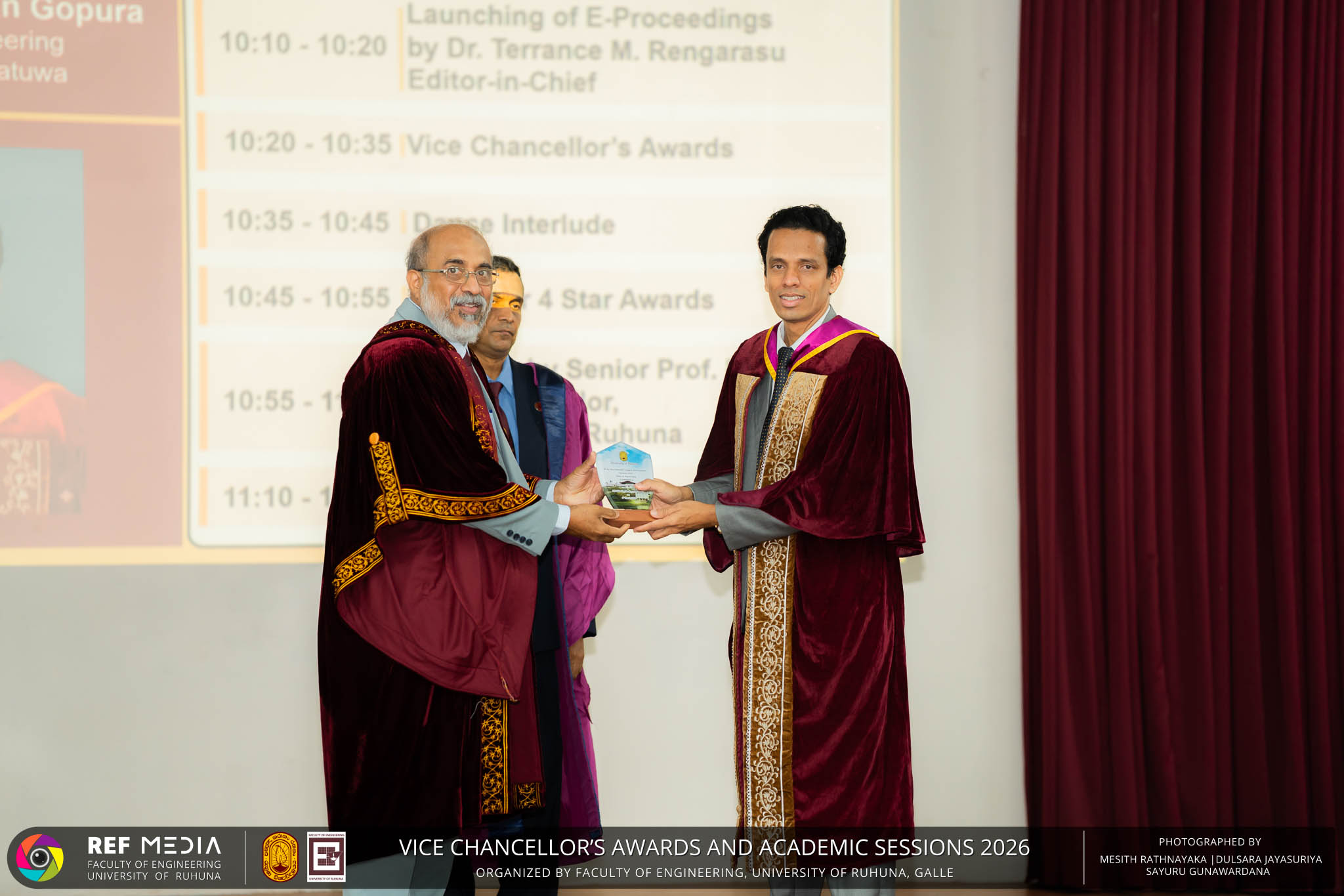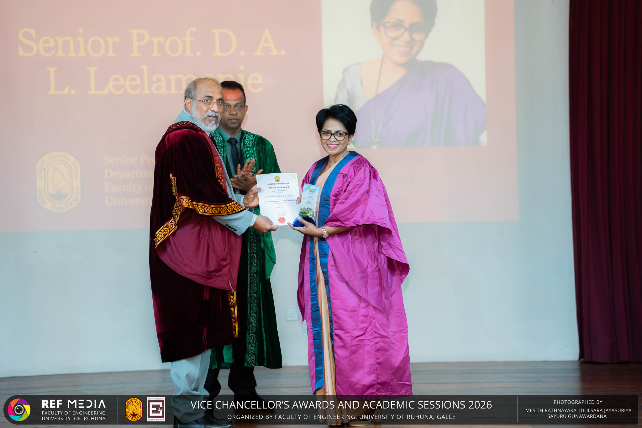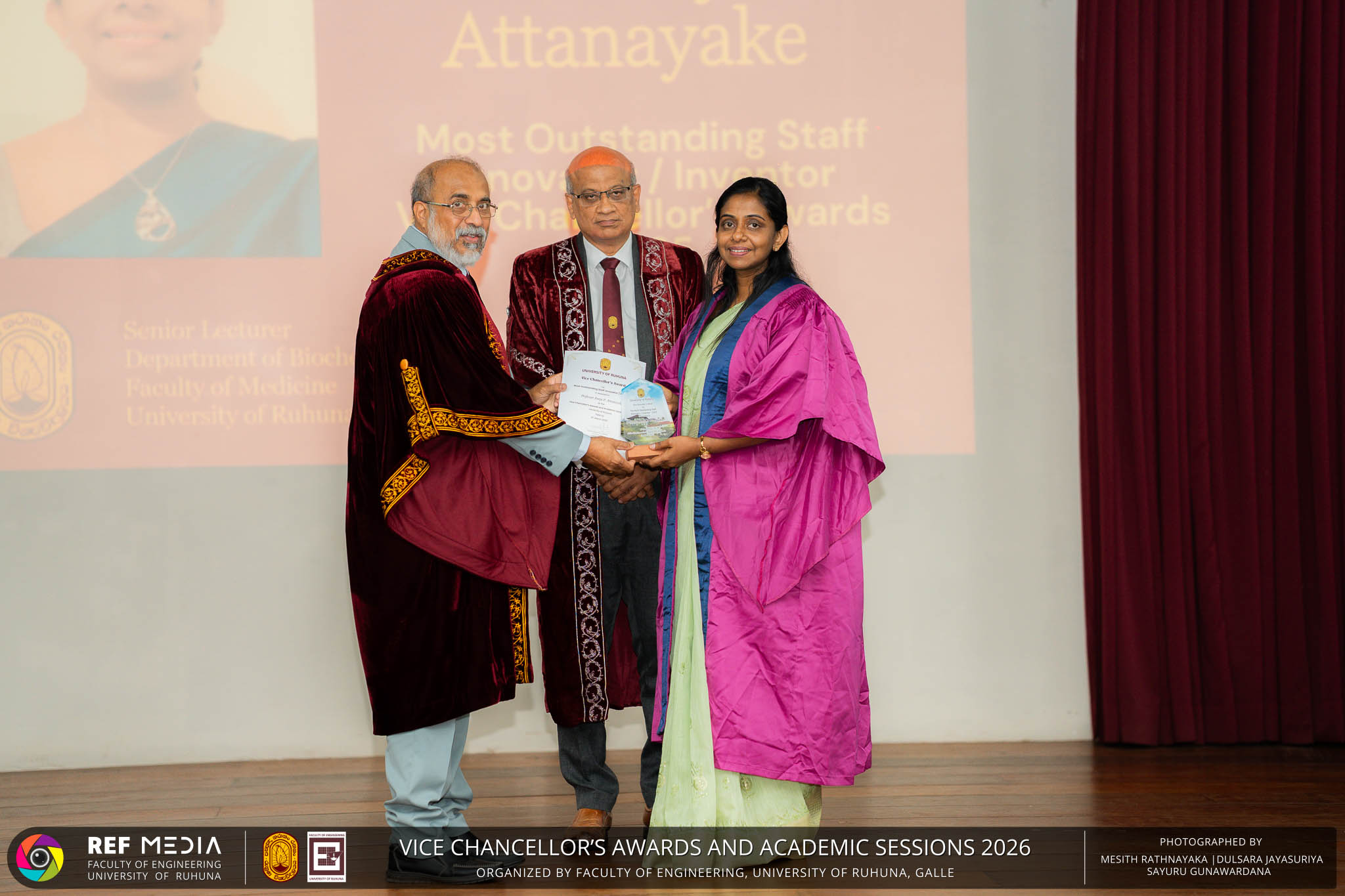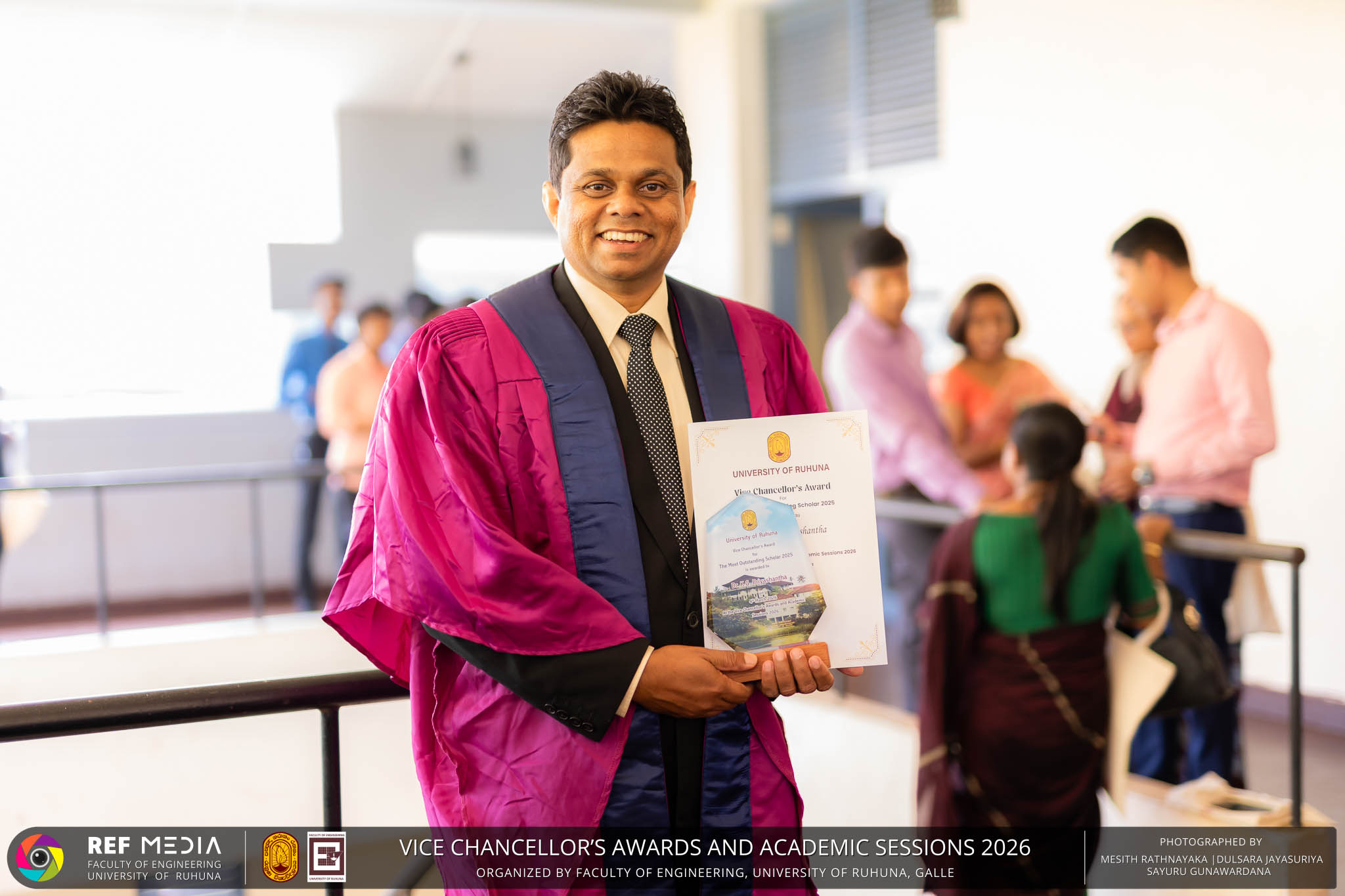 The Vice Chancellor’s Awards and Academic Sessions 2026 of the University of Ruhuna was successfully held on 4th March 2026 at the Faculty of Engineering, Hapugala, Galle, under the theme “Knowledge, Innovation, and Resilience: Towards Sustainable Futures through Technology”. The event served as an important platform for recognizing academic excellence, research achievements, and scholarly contributions across the University. The occasion was graced by Senior Professor P. A. Jayantha, Vice Chancellor of the University of Ruhuna, whose presence highlighted the significance of celebrating research excellence and academic accomplishments within the university community. The keynote address, titled “Research in the Era of AI and Advanced Technologies,” was delivered by Senior Professor Ruwan Gopura from the Faculty of Engineering, University of Moratuwa. The keynote provided valuable insights into emerging research directions and the impact of advanced technologies and artificial intelligence on contemporary research. A significant highlight of the occasion was the conferment of the Emeritus Professorship on Senior Professor (Ms.) K. A. P. W. Jayatilaka from the Faculty of Medicine, recognizing her distinguished academic service and contributions to the University. The Oration was delivered by Professor G. G. Tushara Chaminda on the topic “The Contribution of Pharmaceutical Pollutants in Sri Lankan Waters to Antibiotic Resistance.” The presentation highlighted the environmental presence of pharmaceutical residues in water bodies and their potential role in promoting antibiotic-resistant microorganisms. The Oration emphasized the importance of effective waste management, environmental monitoring, and research to address this emerging public health concern. It also drew attention to the relevance of this issue within the Sri Lankan context. During the event, Best Presenter Awards were presented to the recipients of the Academic Sessions 2025, covering both technical sessions and poster presentations in recognition of their outstanding research presentations. A highlight of the event was the presentation of the Vice Chancellor’s Awards, which recognize outstanding academic achievements within the University. Dr. K. G. Priyashantha from the Faculty of Management and Finance was honored as the Most Outstanding Scholar of the University, while Dr. K. L. Kushan Sudheera from the Faculty of Engineering received the award for the Most Outstanding Young Researcher. Furthermore, Professor Anoja P. Attanayaka from the Faculty of Medicine was recognized as the Most Outstanding Staff Inventor/Innovator. In recognition of exceptional research performance, the UOR Tier 4 Star Award was presented to Senior Professor Ajith Nagahawatta from the Faculty of Medicine and Senior Professor D. A. L. Leelamanie from the Faculty of Agriculture. The Academic Sessions provided a platform for researchers, academic staff, and postgraduate students to present their research findings through technical and poster sessions covering a wide range of disciplines. The event facilitated knowledge sharing, interdisciplinary engagement, and the dissemination of new research findings within the university community. A total of 123 abstracts were accepted for presentation, while 05 submissions were desk rejected and 07 abstracts were withdrawn due to unavoidable reasons (refer to Tables 1 and 3). Faculty-wise submissions (refer to Table 2) indicated that the Faculty of Engineering contributed the highest proportion (39%), followed by the Faculty of Agriculture (16%), the Faculty of Technology (14%), and the Faculty of Allied Health Sciences (13%). Other faculties of the University also contributed to the academic sessions. In total, 10 technical sessions and 3 poster sessions were conducted under seven thematic areas, showcasing research presented by university staff as well as postgraduate and undergraduate students. The event programme also included two cultural dance performances presented by undergraduate students of the Faculty of Engineering, which added a vibrant cultural element to the proceedings. The programme was smoothly conducted with the support of a dedicated team of Masters of Ceremonies. The event attracted more than 400 participants, reflecting strong engagement from the university community. The event was organized under the leadership of Professor Sudhira De Silva, Chair of the Organizing Committee, with Dr. Kumudu Seneviratna serving as the Secretary. The successful conduct of the event was made possible through the collective efforts and support of academic, administrative, non-academic staff and students who contributed to its organization. Overall, the Vice Chancellor’s Awards and Academic Sessions – 2026 strengthened the research culture of the University of Ruhuna by recognizing scholarly excellence and providing a platform for academic engagement and collaboration.