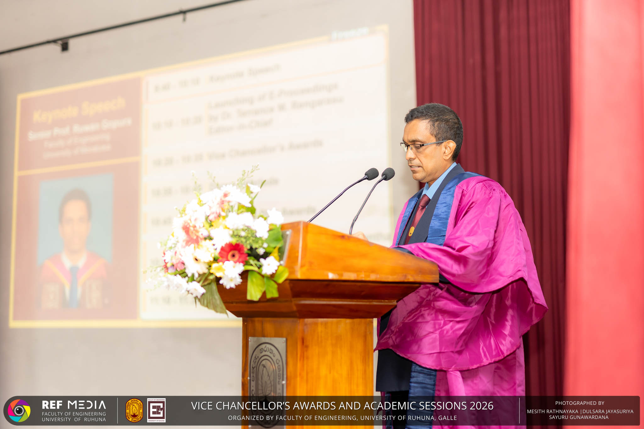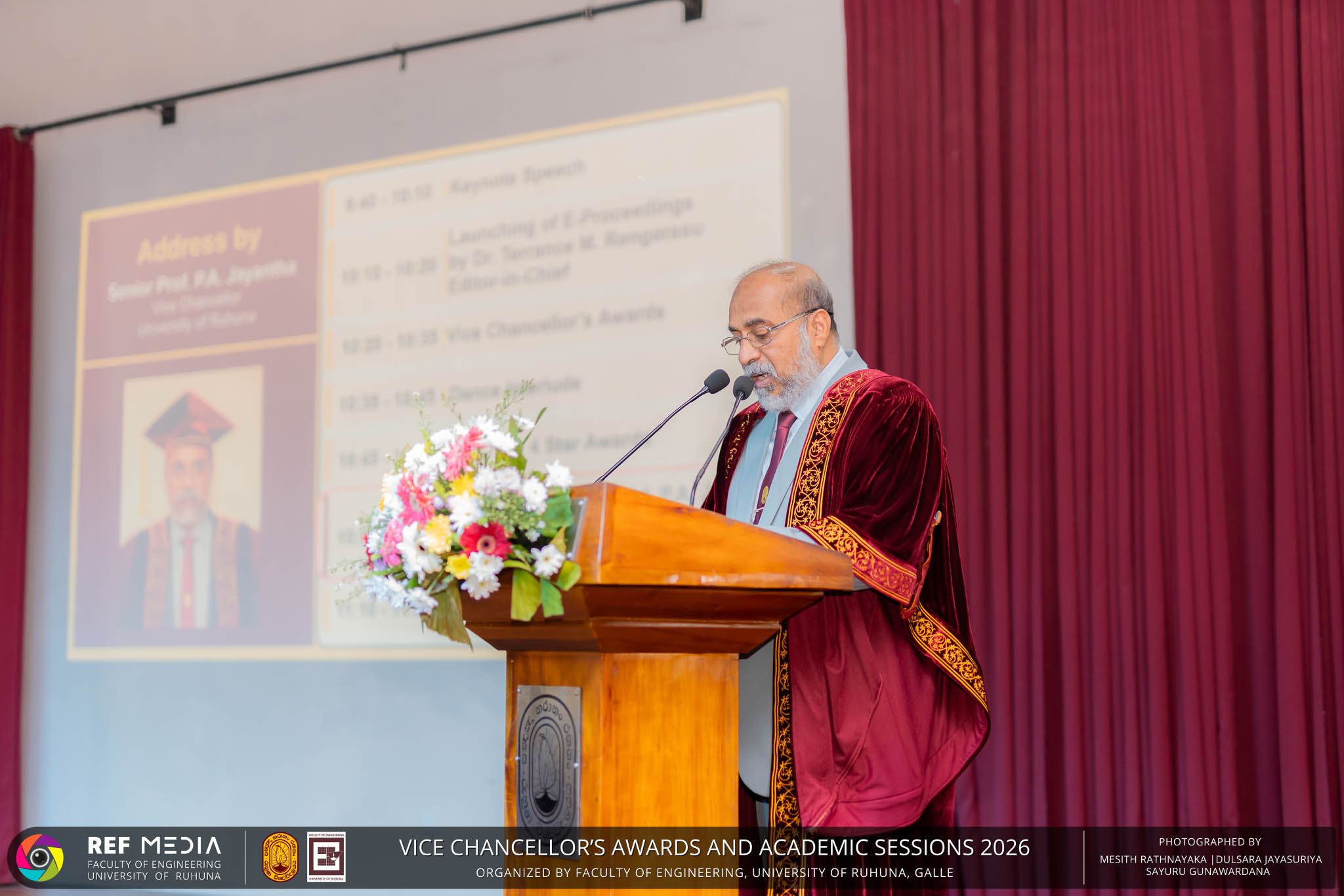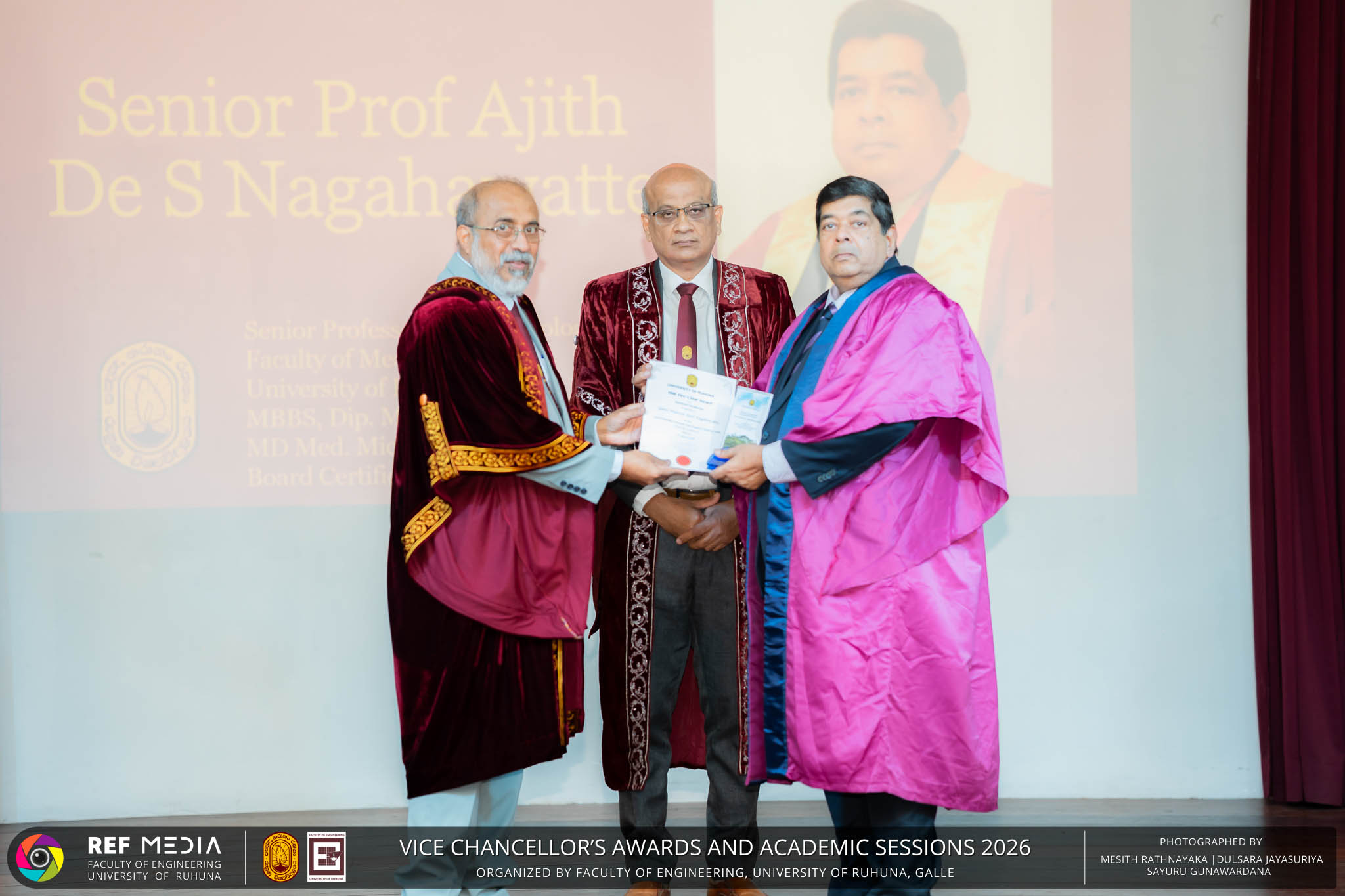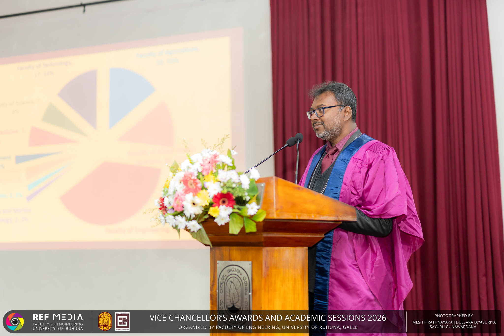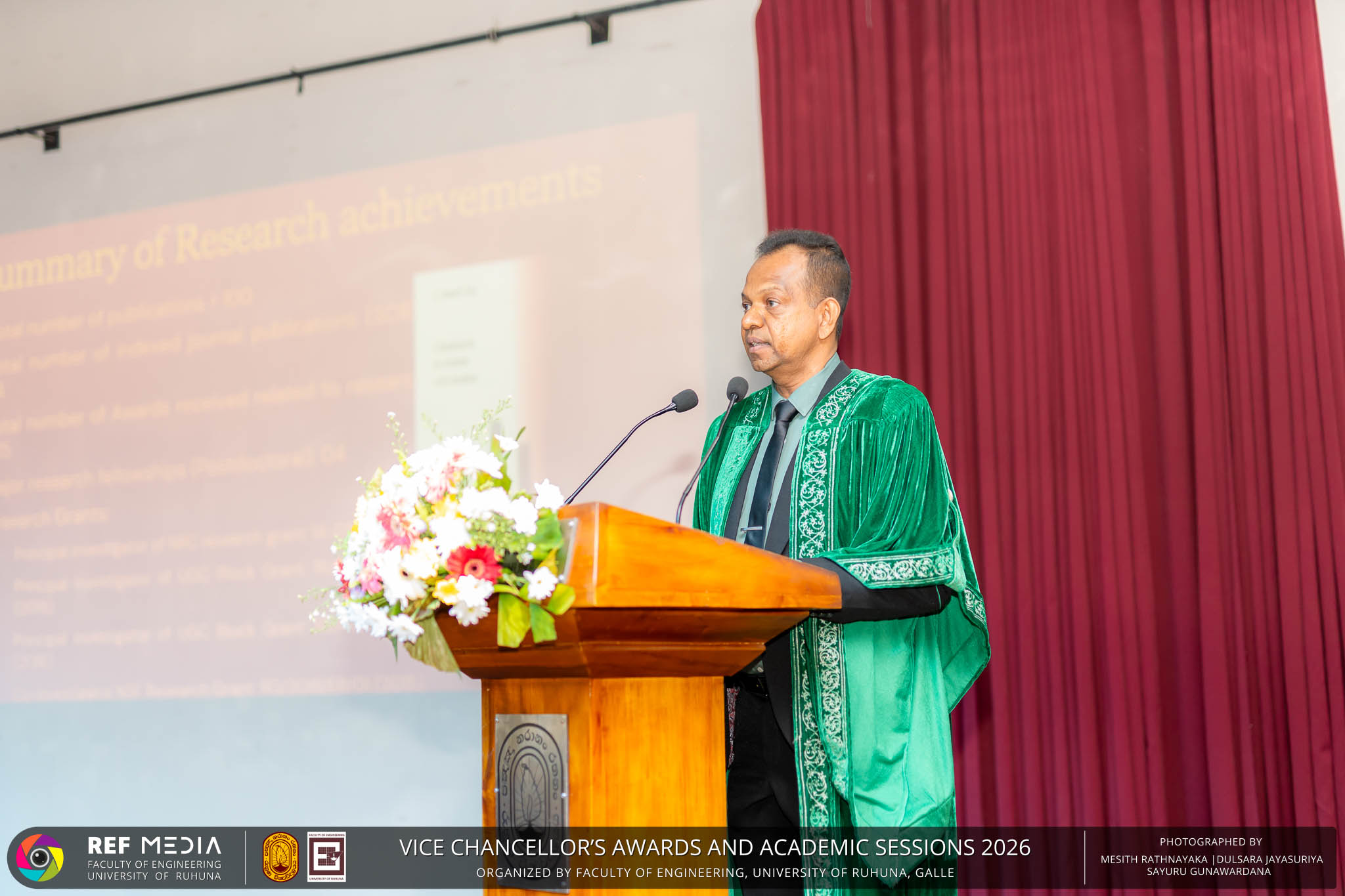 The Vice Chancellor’s Awards and Academic Sessions 2026 of the University of Ruhuna was successfully held on 4th March 2026 at the Faculty of Engineering, Hapugala, Galle, under the theme “Knowledge, Innovation, and Resilience: Towards Sustainable Futures through Technology”. The event served as an important platform for recognizing academic excellence, research achievements, and scholarly contributions across the University. The occasion was graced by Senior Professor P. A. Jayantha, Vice Chancellor of the University of Ruhuna, whose presence highlighted the significance of celebrating research excellence and academic accomplishments within the university community. The keynote address, titled “Research in the Era of AI and Advanced Technologies,” was delivered by Senior Professor Ruwan Gopura from the Faculty of Engineering, University of Moratuwa. The keynote provided valuable insights into emerging research directions and the impact of advanced technologies and artificial intelligence on contemporary research. A significant highlight of the occasion was the conferment of the Emeritus Professorship on Senior Professor (Ms.) K. A. P. W. Jayatilaka from the Faculty of Medicine, recognizing her distinguished academic service and contributions to the University. The Oration was delivered by Professor G. G. Tushara Chaminda on the topic “The Contribution of Pharmaceutical Pollutants in Sri Lankan Waters to Antibiotic Resistance.” The presentation highlighted the environmental presence of pharmaceutical residues in water bodies and their potential role in promoting antibiotic-resistant microorganisms. The Oration emphasized the importance of effective waste management, environmental monitoring, and research to address this emerging public health concern. It also drew attention to the relevance of this issue within the Sri Lankan context. During the event, Best Presenter Awards were presented to the recipients of the Academic Sessions 2025, covering both technical sessions and poster presentations in recognition of their outstanding research presentations. A highlight of the event was the presentation of the Vice Chancellor’s Awards, which recognize outstanding academic achievements within the University. Dr. K. G. Priyashantha from the Faculty of Management and Finance was honored as the Most Outstanding Scholar of the University, while Dr. K. L. Kushan Sudheera from the Faculty of Engineering received the award for the Most Outstanding Young Researcher. Furthermore, Professor Anoja P. Attanayaka from the Faculty of Medicine was recognized as the Most Outstanding Staff Inventor/Innovator. In recognition of exceptional research performance, the UOR Tier 4 Star Award was presented to Senior Professor Ajith Nagahawatta from the Faculty of Medicine and Senior Professor D. A. L. Leelamanie from the Faculty of Agriculture. The Academic Sessions provided a platform for researchers, academic staff, and postgraduate students to present their research findings through technical and poster sessions covering a wide range of disciplines. The event facilitated knowledge sharing, interdisciplinary engagement, and the dissemination of new research findings within the university community. A total of 123 abstracts were accepted for presentation, while 05 submissions were desk rejected and 07 abstracts were withdrawn due to unavoidable reasons (refer to Tables 1 and 3). Faculty-wise submissions (refer to Table 2) indicated that the Faculty of Engineering contributed the highest proportion (39%), followed by the Faculty of Agriculture (16%), the Faculty of Technology (14%), and the Faculty of Allied Health Sciences (13%). Other faculties of the University also contributed to the academic sessions. In total, 10 technical sessions and 3 poster sessions were conducted under seven thematic areas, showcasing research presented by university staff as well as postgraduate and undergraduate students. The event programme also included two cultural dance performances presented by undergraduate students of the Faculty of Engineering, which added a vibrant cultural element to the proceedings. The programme was smoothly conducted with the support of a dedicated team of Masters of Ceremonies. The event attracted more than 400 participants, reflecting strong engagement from the university community. The event was organized under the leadership of Professor Sudhira De Silva, Chair of the Organizing Committee, with Dr. Kumudu Seneviratna serving as the Secretary. The successful conduct of the event was made possible through the collective efforts and support of academic, administrative, non-academic staff and students who contributed to its organization. Overall, the Vice Chancellor’s Awards and Academic Sessions – 2026 strengthened the research culture of the University of Ruhuna by recognizing scholarly excellence and providing a platform for academic engagement and collaboration.