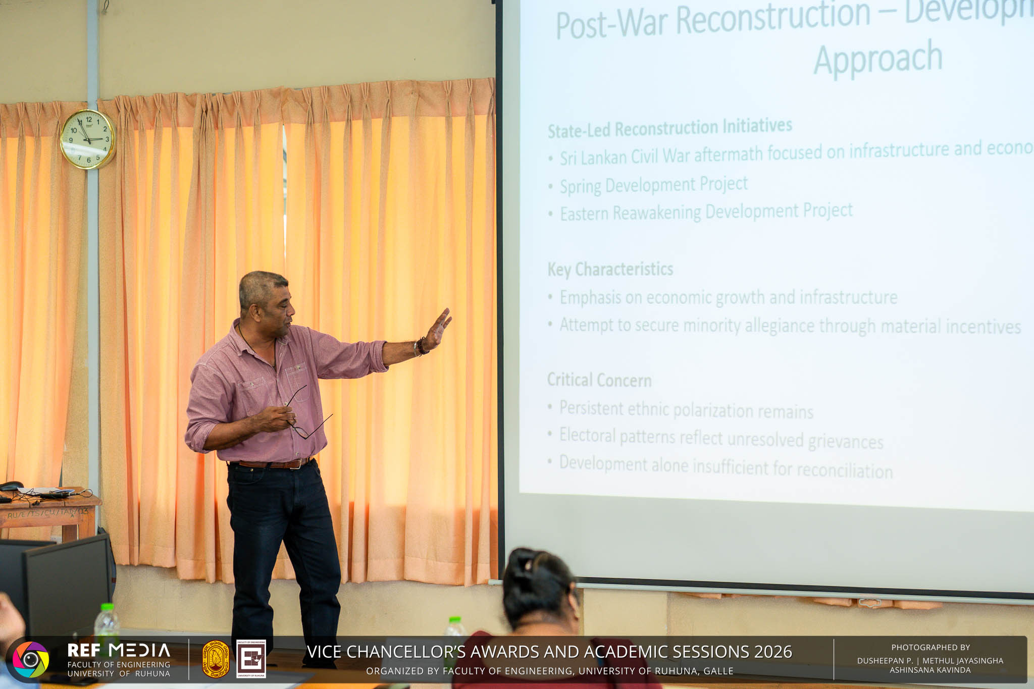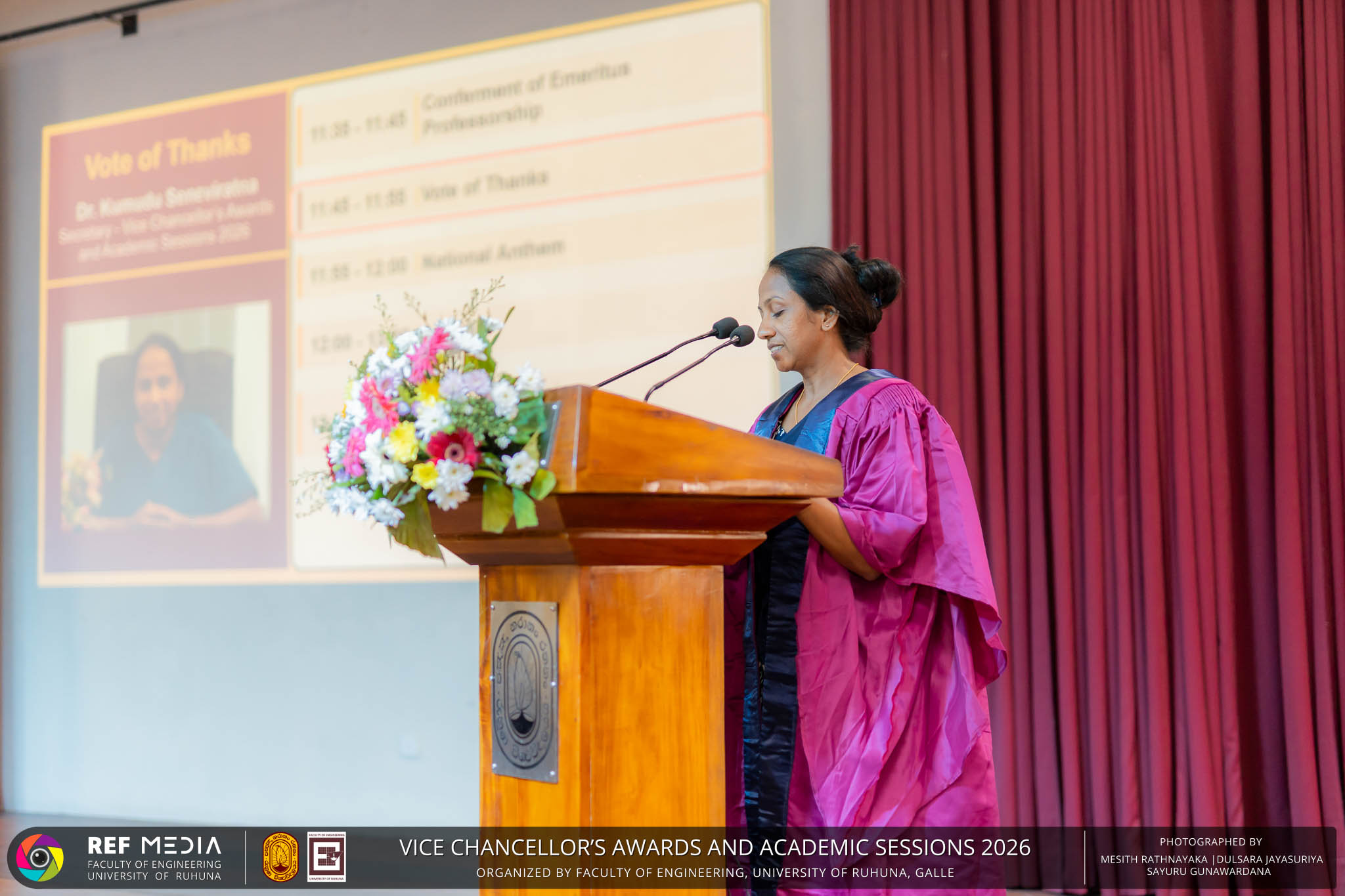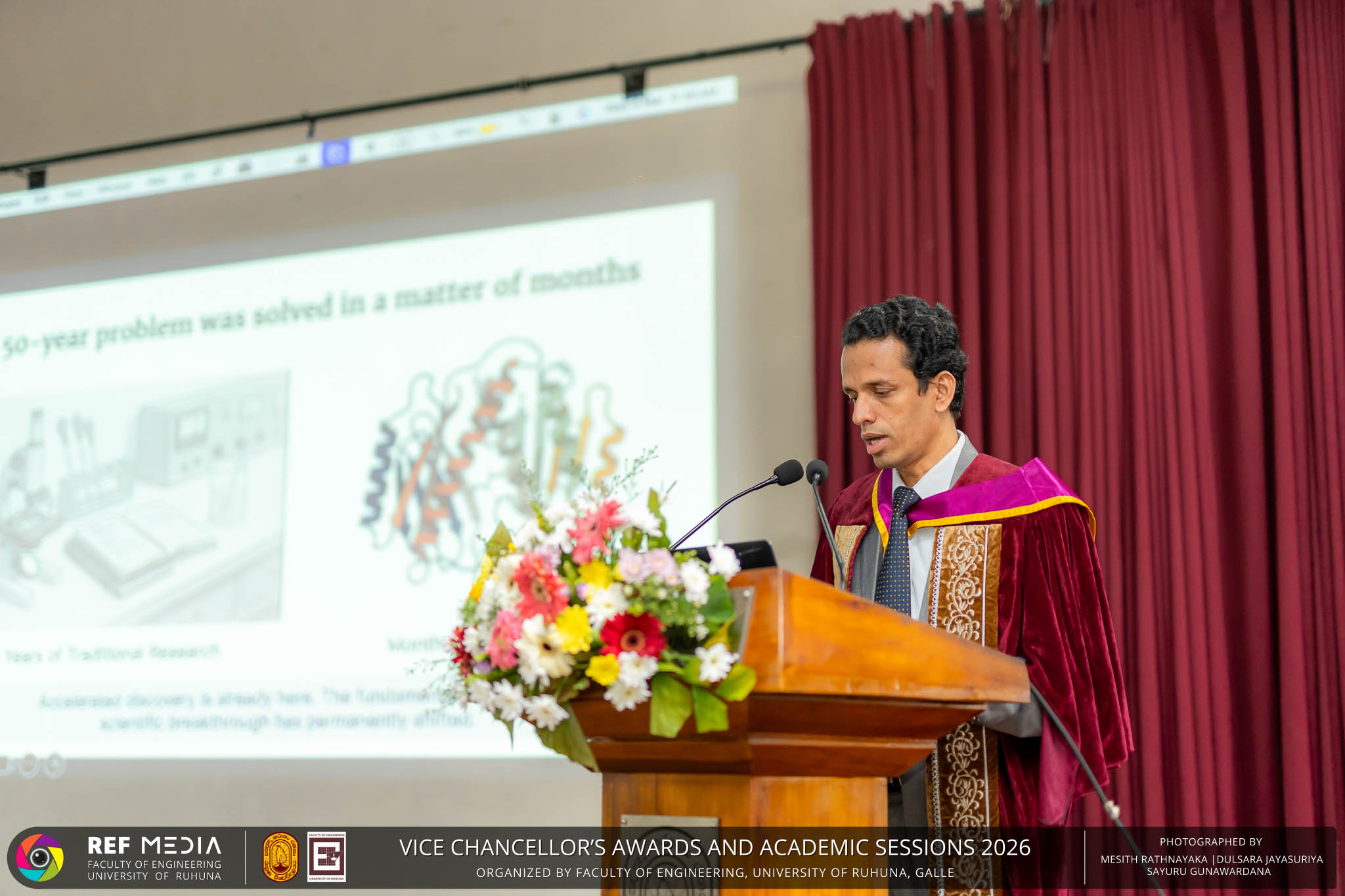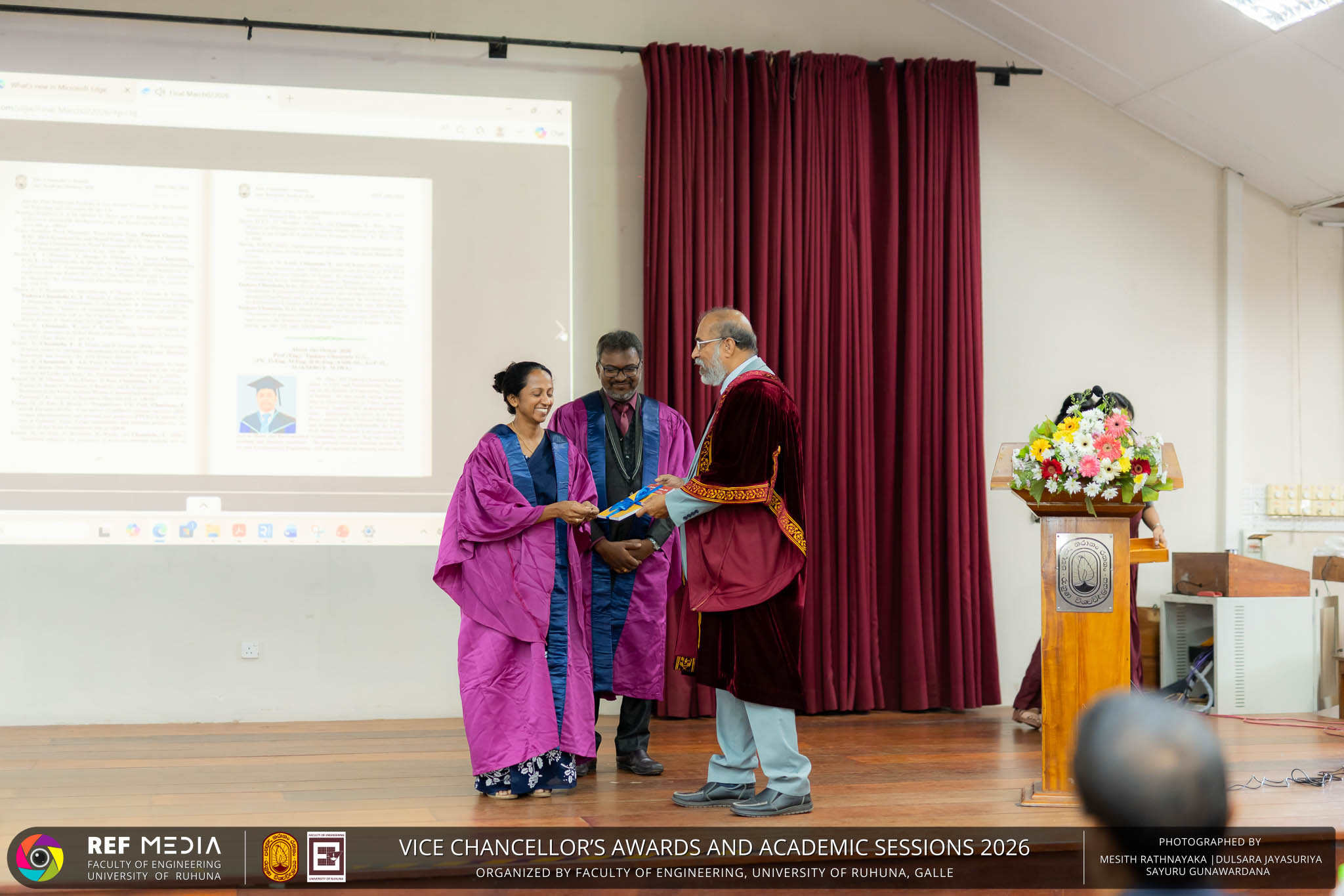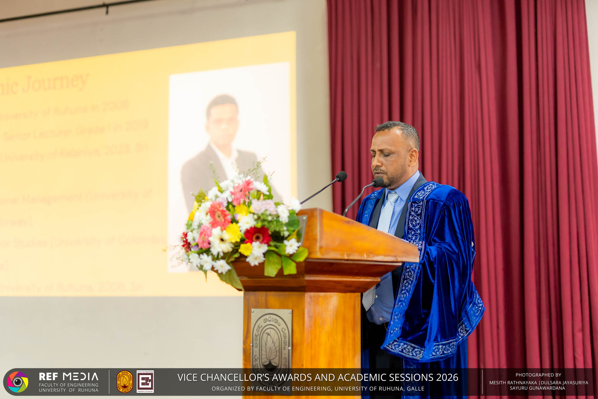 The Vice Chancellor’s Awards and Academic Sessions 2026 of the University of Ruhuna was successfully held on 4th March 2026 at the Faculty of Engineering, Hapugala, Galle, under the theme “Knowledge, Innovation, and Resilience: Towards Sustainable Futures through Technology”. The event served as an important platform for recognizing academic excellence, research achievements, and scholarly contributions across the University. The occasion was graced by Senior Professor P. A. Jayantha, Vice Chancellor of the University of Ruhuna, whose presence highlighted the significance of celebrating research excellence and academic accomplishments within the university community. The keynote address, titled “Research in the Era of AI and Advanced Technologies,” was delivered by Senior Professor Ruwan Gopura from the Faculty of Engineering, University of Moratuwa. The keynote provided valuable insights into emerging research directions and the impact of advanced technologies and artificial intelligence on contemporary research. A significant highlight of the occasion was the conferment of the Emeritus Professorship on Senior Professor (Ms.) K. A. P. W. Jayatilaka from the Faculty of Medicine, recognizing her distinguished academic service and contributions to the University. The Oration was delivered by Professor G. G. Tushara Chaminda on the topic “The Contribution of Pharmaceutical Pollutants in Sri Lankan Waters to Antibiotic Resistance.” The presentation highlighted the environmental presence of pharmaceutical residues in water bodies and their potential role in promoting antibiotic-resistant microorganisms. The Oration emphasized the importance of effective waste management, environmental monitoring, and research to address this emerging public health concern. It also drew attention to the relevance of this issue within the Sri Lankan context. During the event, Best Presenter Awards were presented to the recipients of the Academic Sessions 2025, covering both technical sessions and poster presentations in recognition of their outstanding research presentations. A highlight of the event was the presentation of the Vice Chancellor’s Awards, which recognize outstanding academic achievements within the University. Dr. K. G. Priyashantha from the Faculty of Management and Finance was honored as the Most Outstanding Scholar of the University, while Dr. K. L. Kushan Sudheera from the Faculty of Engineering received the award for the Most Outstanding Young Researcher. Furthermore, Professor Anoja P. Attanayaka from the Faculty of Medicine was recognized as the Most Outstanding Staff Inventor/Innovator. In recognition of exceptional research performance, the UOR Tier 4 Star Award was presented to Senior Professor Ajith Nagahawatta from the Faculty of Medicine and Senior Professor D. A. L. Leelamanie from the Faculty of Agriculture. The Academic Sessions provided a platform for researchers, academic staff, and postgraduate students to present their research findings through technical and poster sessions covering a wide range of disciplines. The event facilitated knowledge sharing, interdisciplinary engagement, and the dissemination of new research findings within the university community. A total of 123 abstracts were accepted for presentation, while 05 submissions were desk rejected and 07 abstracts were withdrawn due to unavoidable reasons (refer to Tables 1 and 3). Faculty-wise submissions (refer to Table 2) indicated that the Faculty of Engineering contributed the highest proportion (39%), followed by the Faculty of Agriculture (16%), the Faculty of Technology (14%), and the Faculty of Allied Health Sciences (13%). Other faculties of the University also contributed to the academic sessions. In total, 10 technical sessions and 3 poster sessions were conducted under seven thematic areas, showcasing research presented by university staff as well as postgraduate and undergraduate students. The event programme also included two cultural dance performances presented by undergraduate students of the Faculty of Engineering, which added a vibrant cultural element to the proceedings. The programme was smoothly conducted with the support of a dedicated team of Masters of Ceremonies. The event attracted more than 400 participants, reflecting strong engagement from the university community. The event was organized under the leadership of Professor Sudhira De Silva, Chair of the Organizing Committee, with Dr. Kumudu Seneviratna serving as the Secretary. The successful conduct of the event was made possible through the collective efforts and support of academic, administrative, non-academic staff and students who contributed to its organization. Overall, the Vice Chancellor’s Awards and Academic Sessions – 2026 strengthened the research culture of the University of Ruhuna by recognizing scholarly excellence and providing a platform for academic engagement and collaboration.
