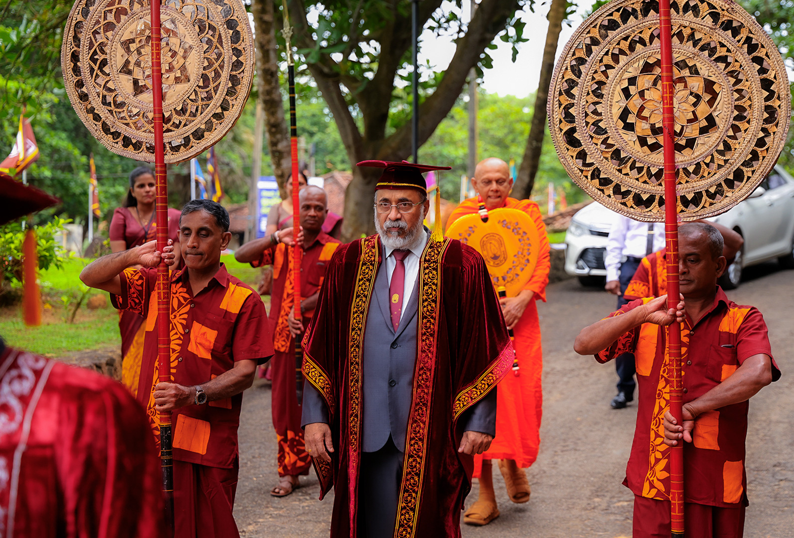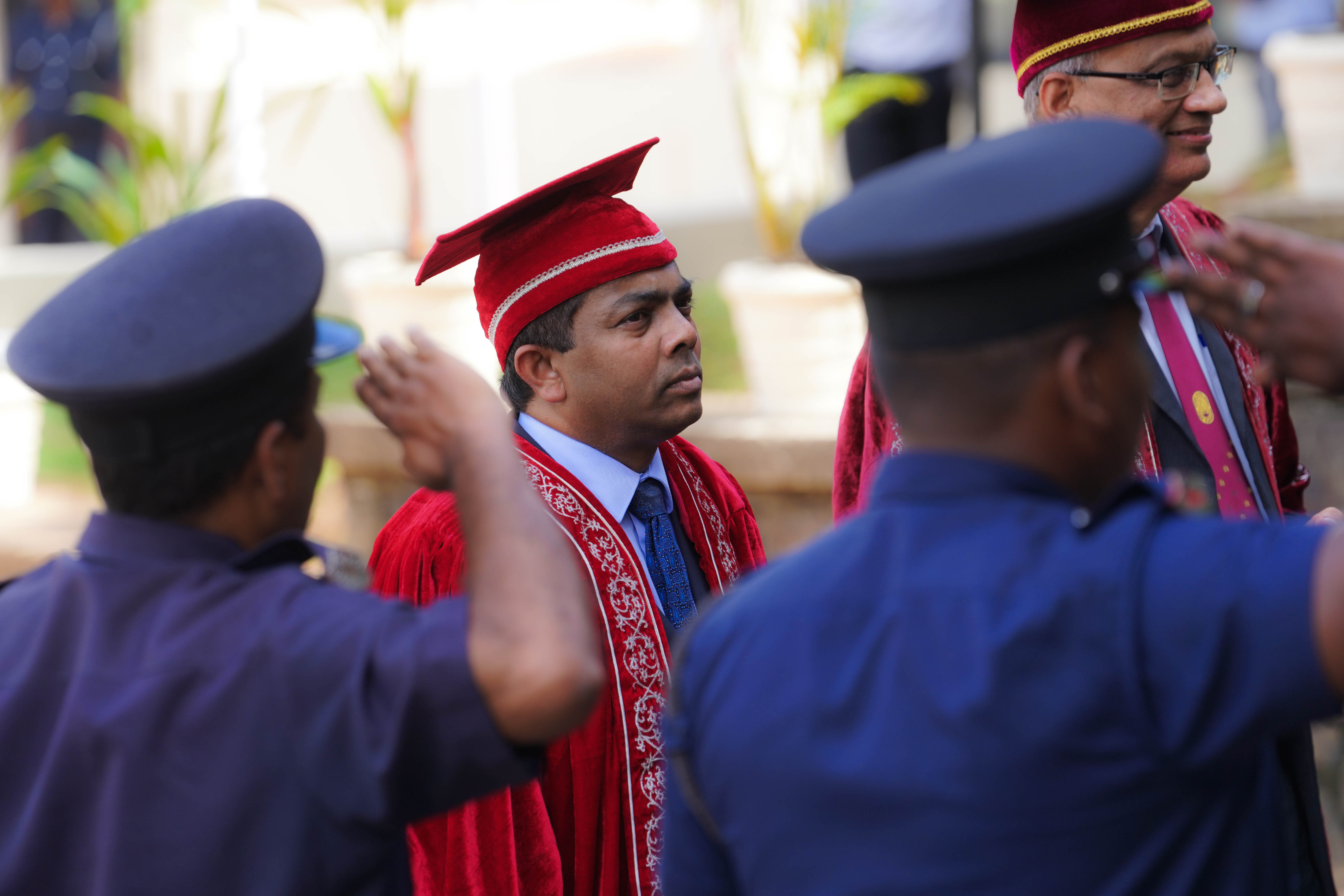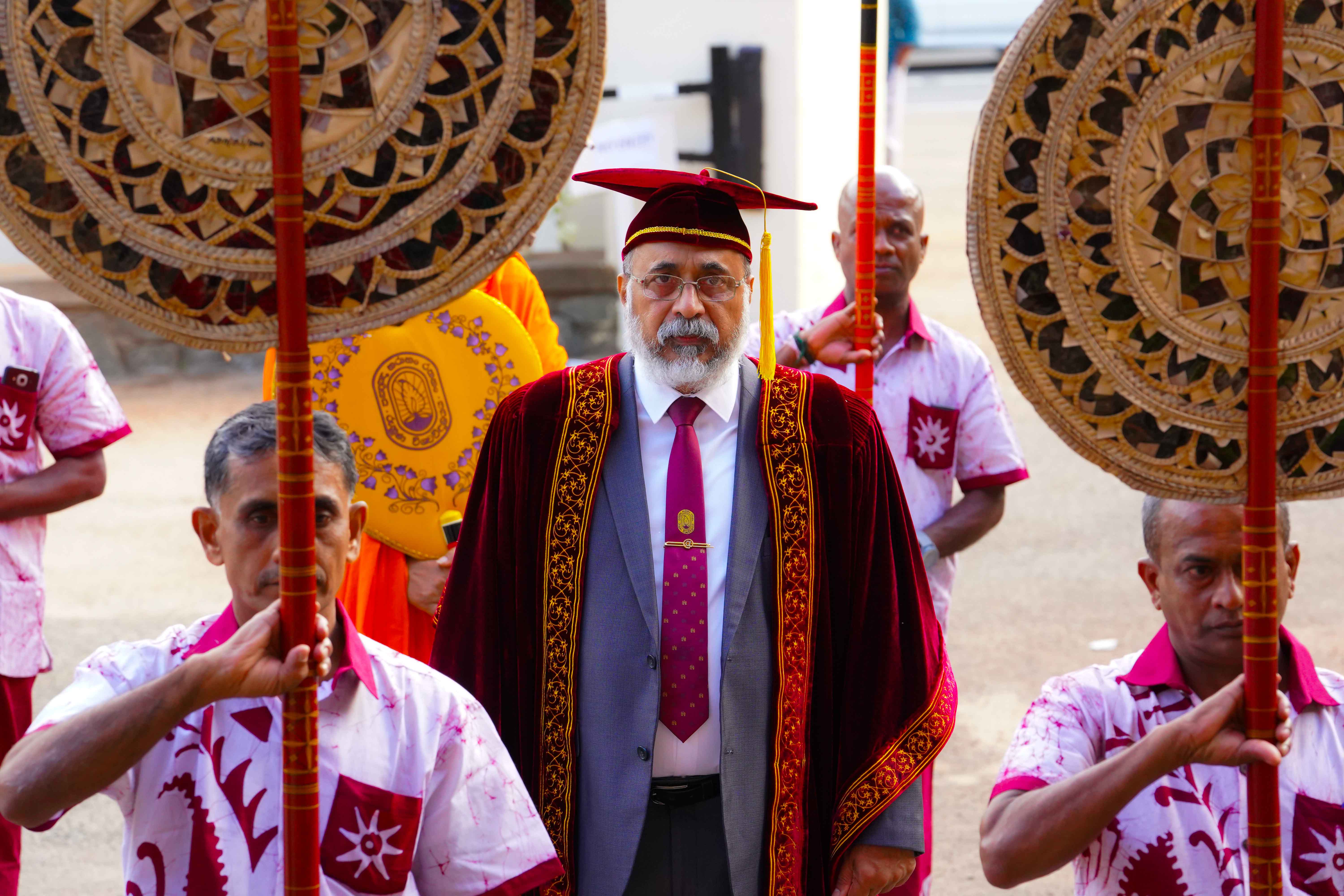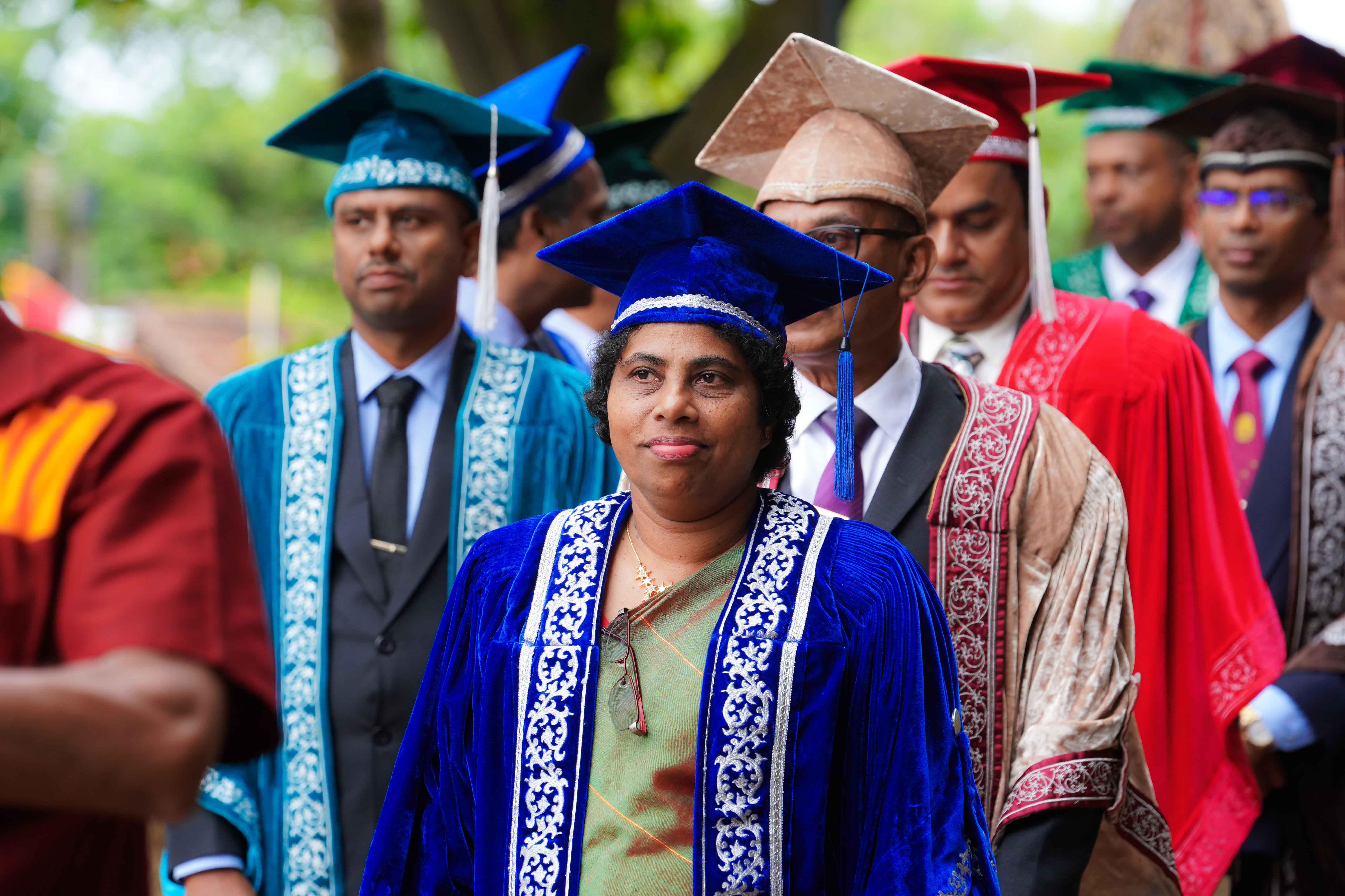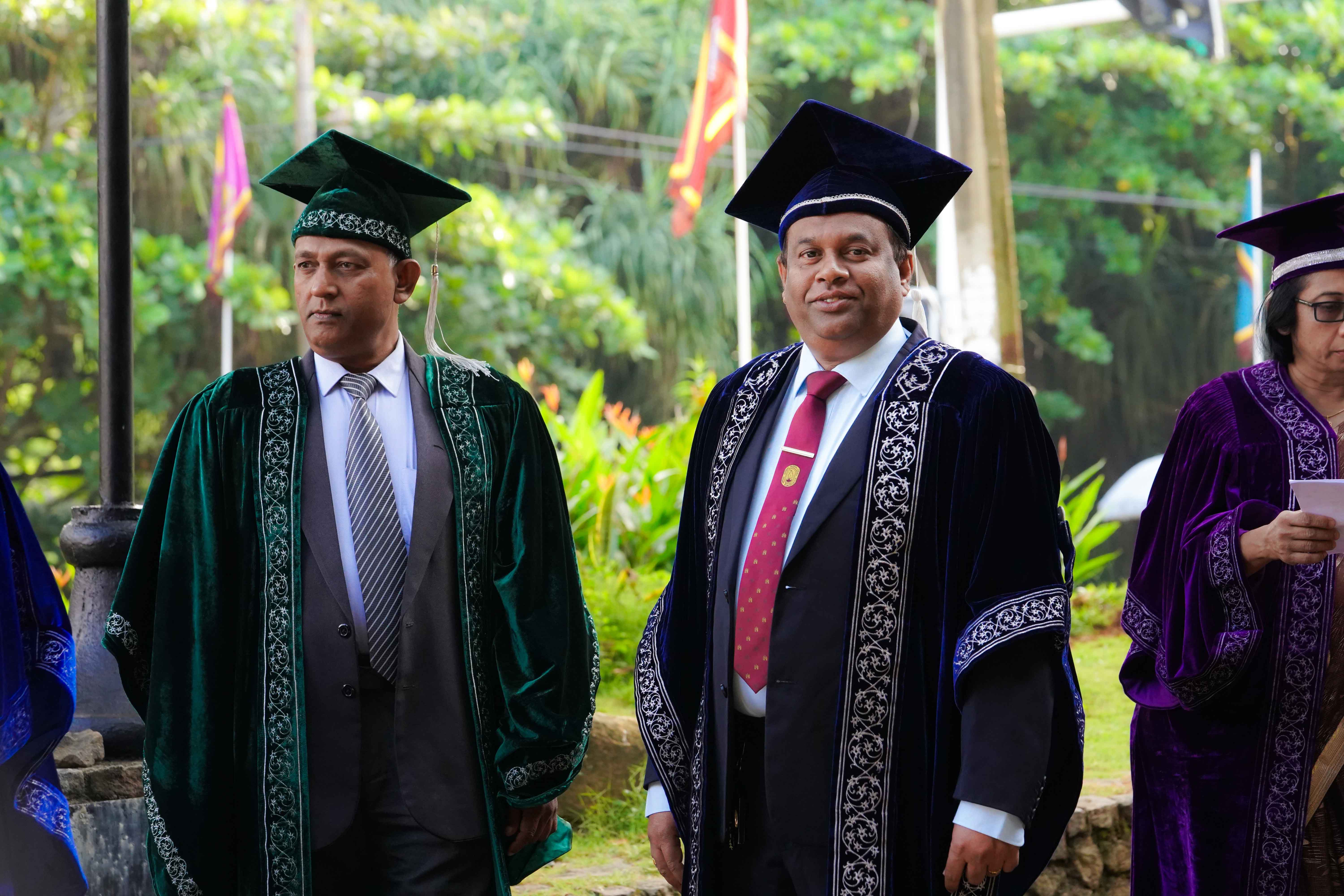 The ceremony was presided over by the Chancellor - Most Ven. Dr. Akuratiye Nanda Nayaka Thero, the Vice-Chancellor - Senior Professor P. A. Jayantha, the Deans of the Faculties, the Librarian, the Acting Registrar - Ms. Chandrika Seneviratne and the Deputy Registrar of Examinations division - Ms. K. G. C. A. Bandarathilake. A total of 3,129 graduates received their degrees at the convocation.