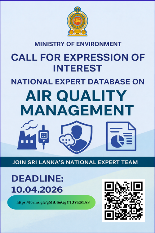 The Air Resources Management and National Ozone Unit of the Ministry of Environment invite Expressions of Interest (EOI) for the establishment of a National Expert Database on Air Quality Management (AQM). This initiative aims to identify and register national experts who can contribute to policy advocacy, technical assessments, research and development, and the formulation of national and regional air quality management strategies in Sri Lanka.